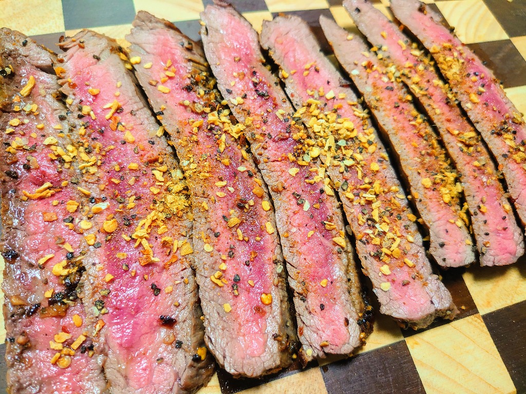 フランクステーキはバラ肉の一部にあたりますが、赤身が強くアッサリしていて柔らかいです。